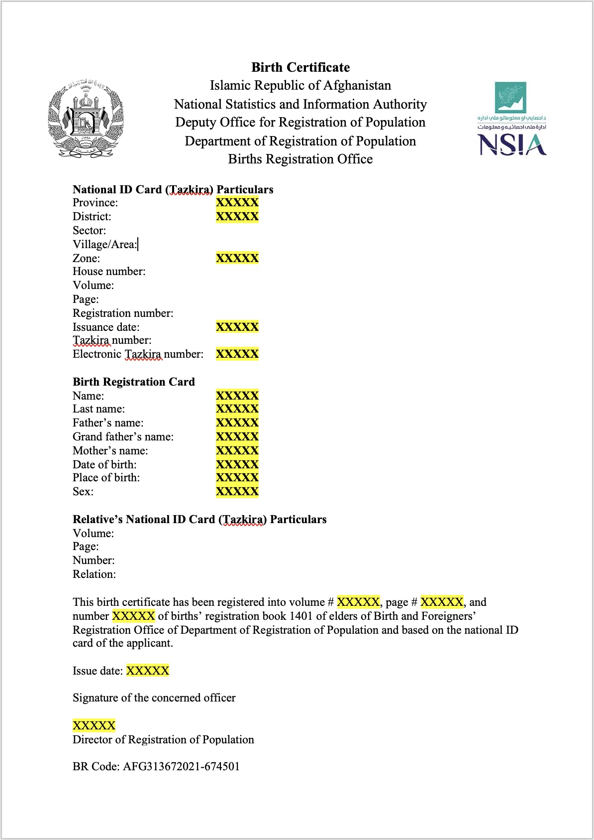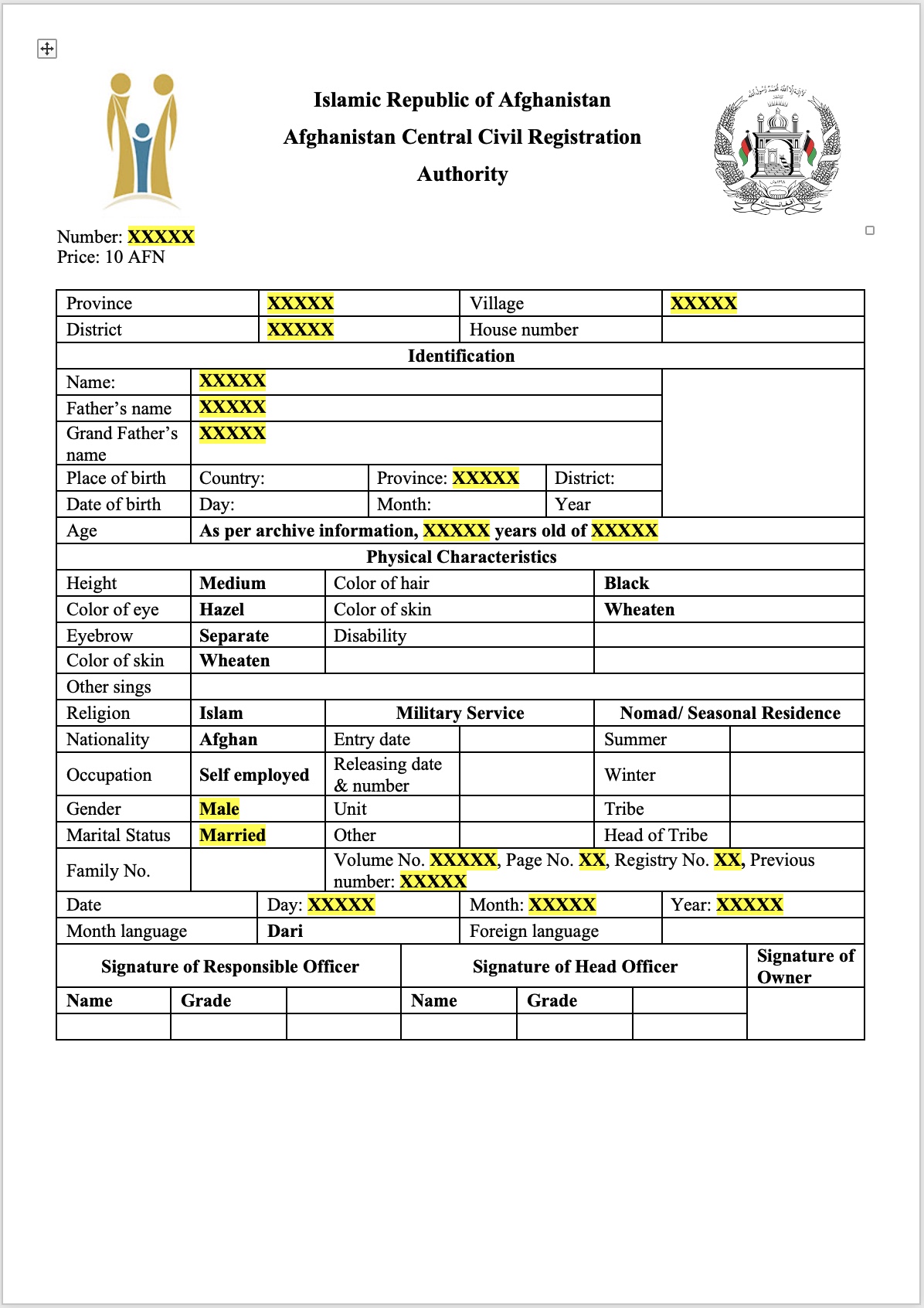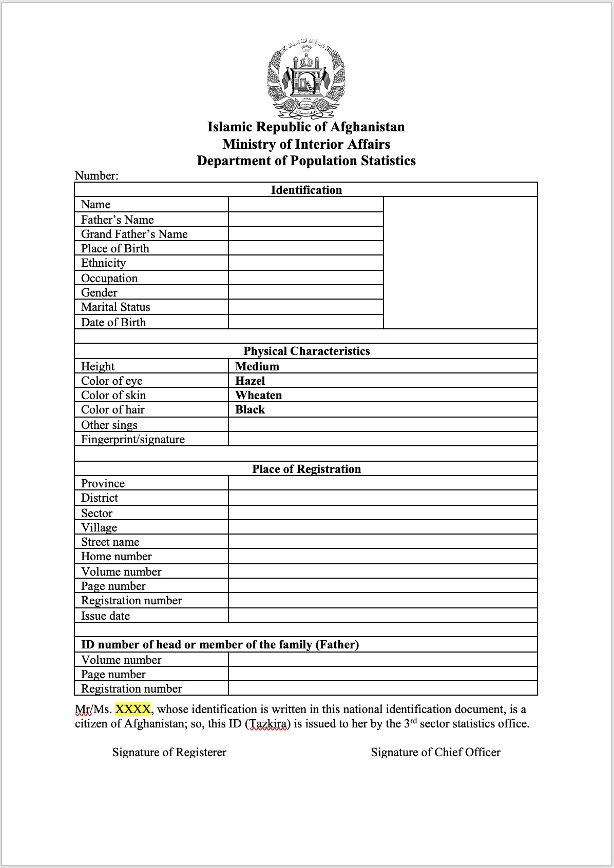 tazkira booklet format english