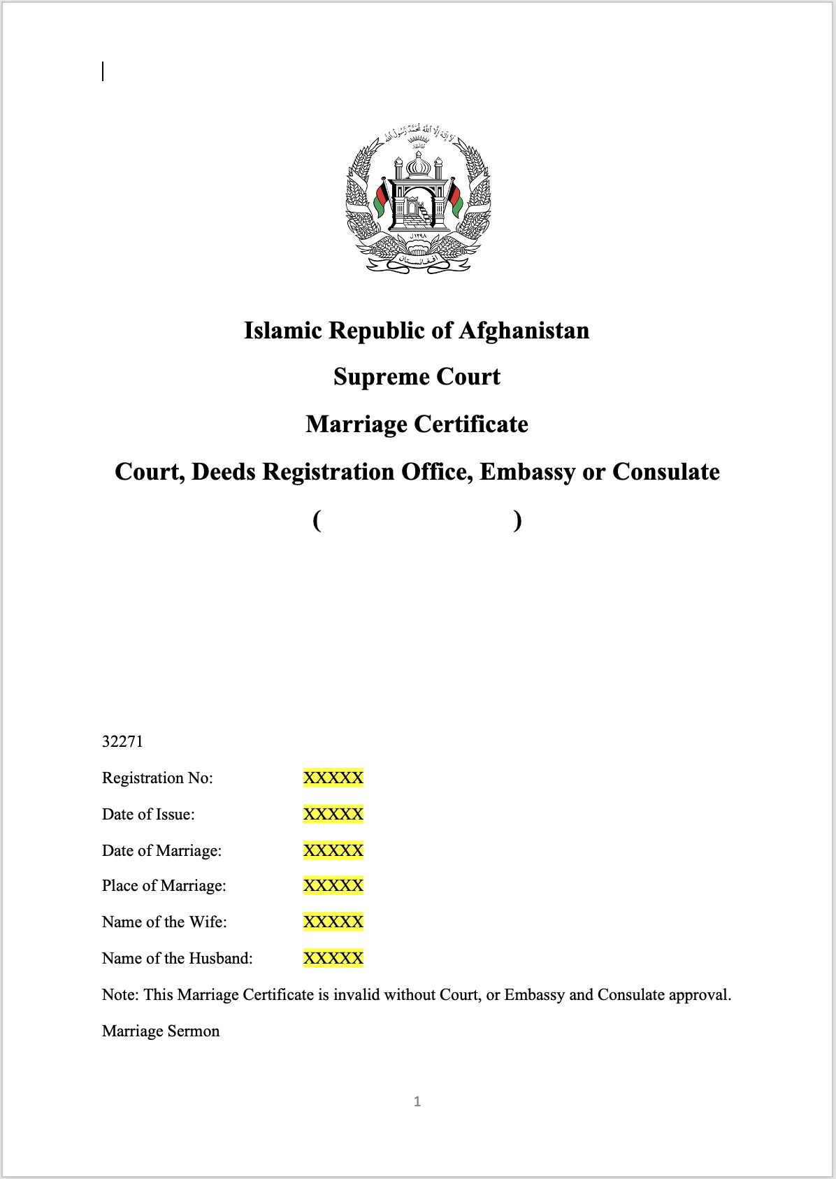 marriage certificate